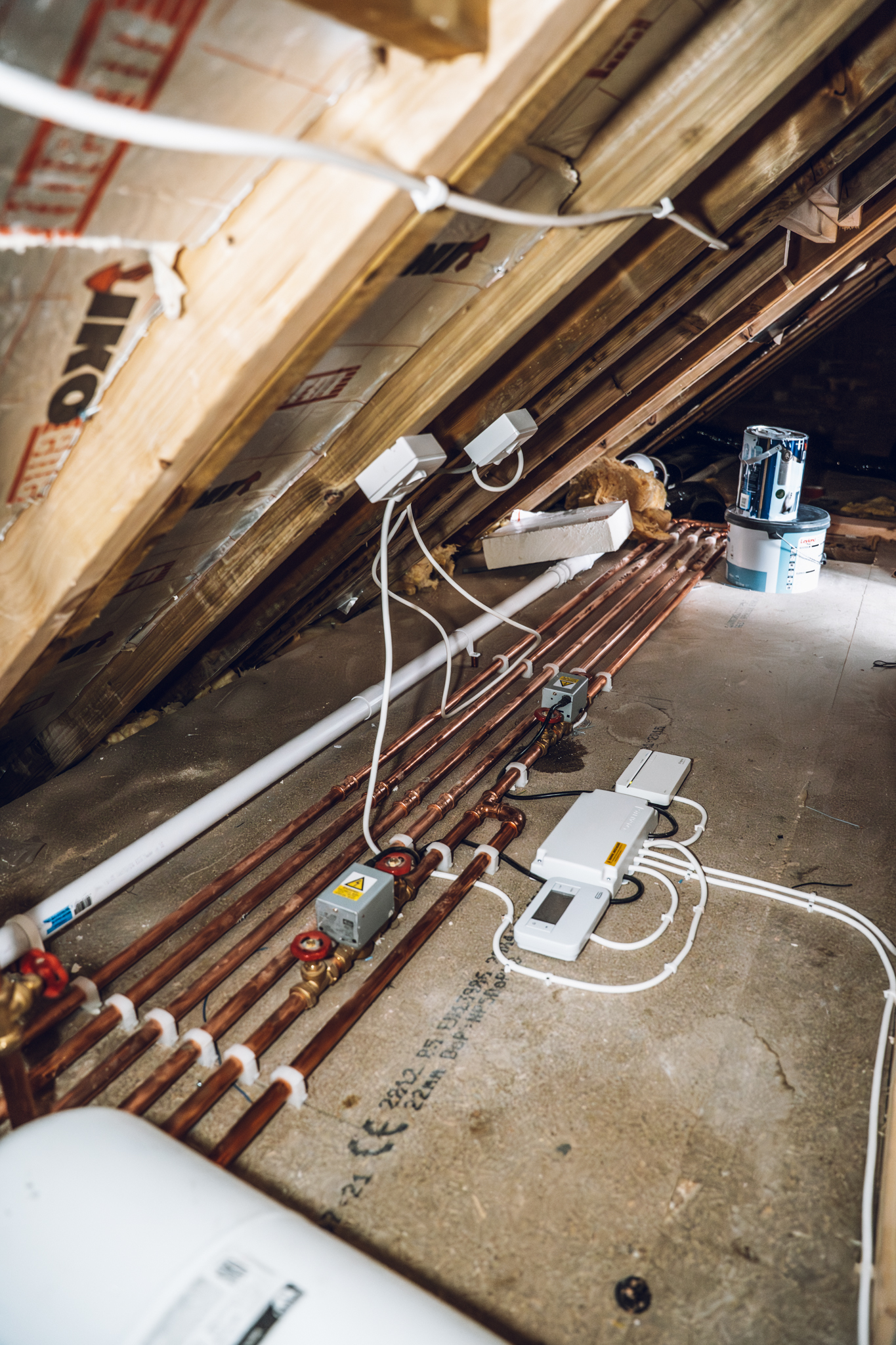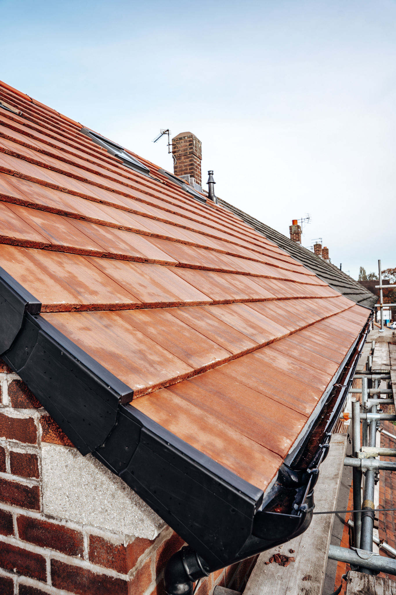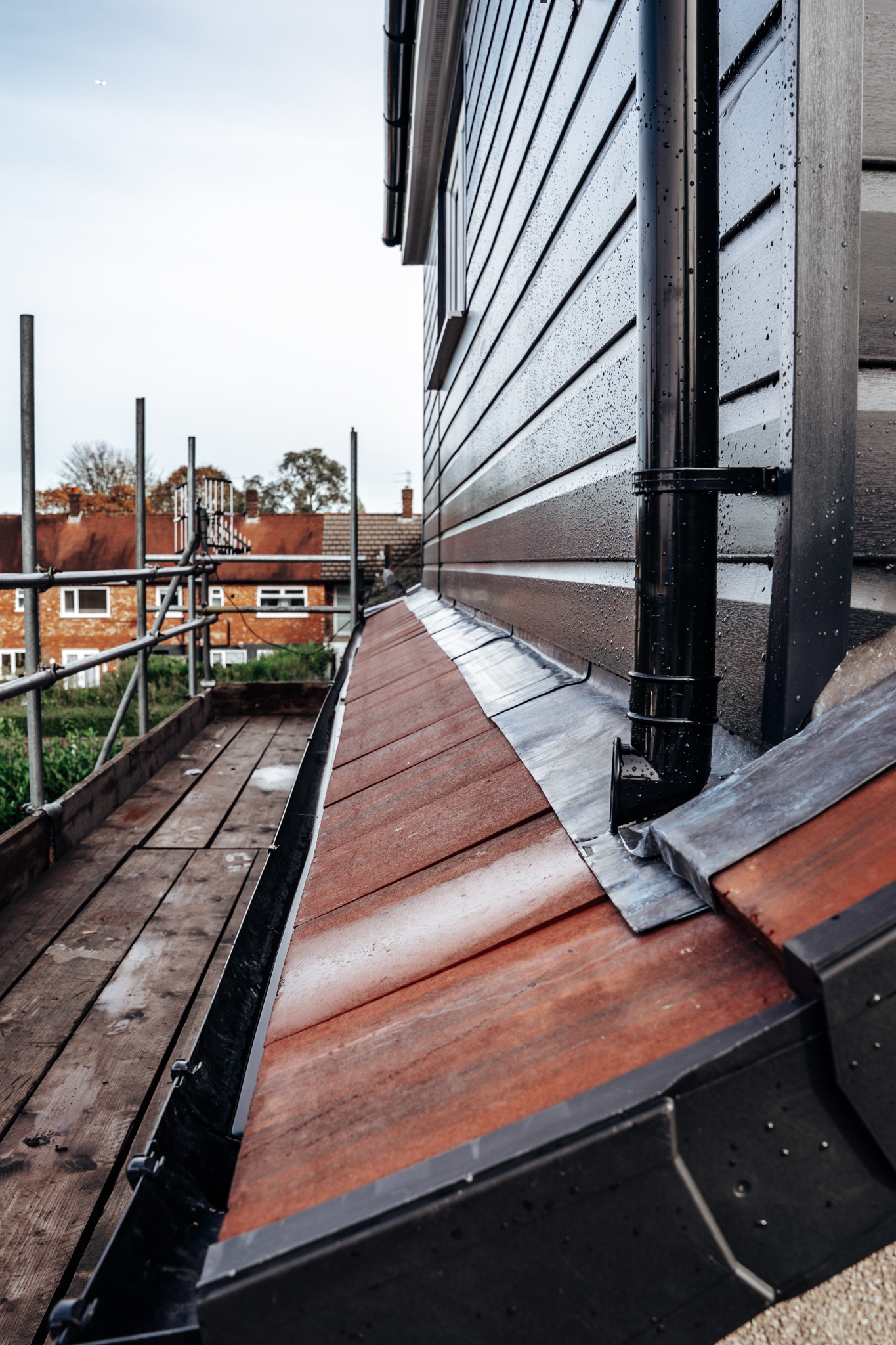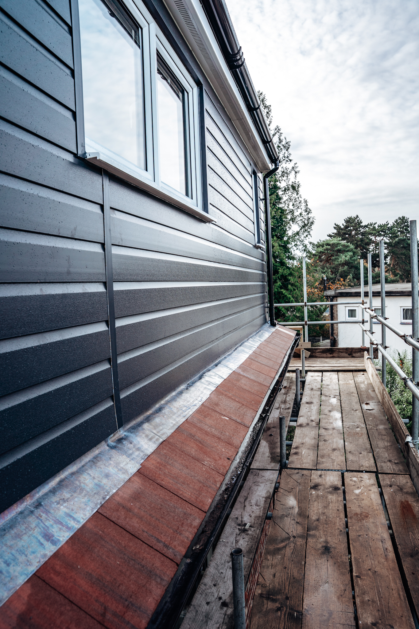 This project involved a full refurbishment of the property’s roof structure and external cladding. The work included replacing the existing roof tiles with high-quality clay tiles, installing new lead flashings, and ensuring all junctions were weather-tight. The dormer elevations were upgraded with modern composite cladding to improve durability, insulation, and overall appearance. Internally, essential pipework and services within the loft space were renewed and neatly organised, helping to future-proof the home’s heating and plumbing system. The result is a significantly enhanced building envelope that combines long-lasting performance with a clean, contemporary finish.